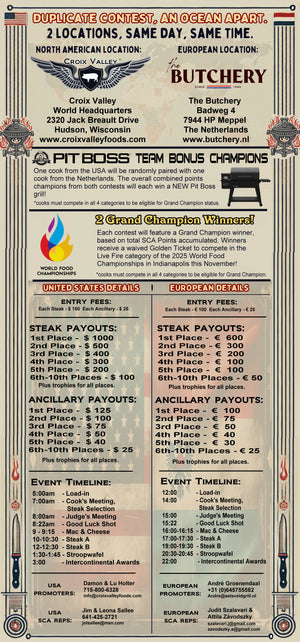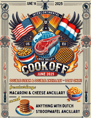 Meld u nu aan voor de Intercontinental Croix Valley Cookoff, de allereerste Intercontinental Steak Cookoff Association-wedstrijd die op 14 juni in Meppel, Nederland, wordt gehouden. Terwijl de Croix Valley Cookoff in Nederland plaatsvindt, wordt er tegelijkertijd een duplicaatpartnerwedstrijd gehouden in de Verenigde Staten op het Croix Valley World Headquarters in Hudson, Wisconsin.
